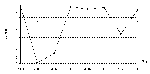 Теперь легко определить реальное значение ВВП 2007 года, пересчитав его в сопоставимых ценах: