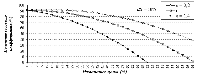 Если цены на оба товара изменились пропорционально, то расчетные значения, полученные по формуле (2.15) и по формуле (2.16) будут совпадать.