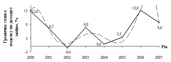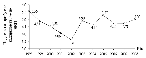 [I14]с 1995 по 2003 гг. в Украине ставка налогообложения прибыли предприятий была 30%, а с 2004 года применяется ставка 25%